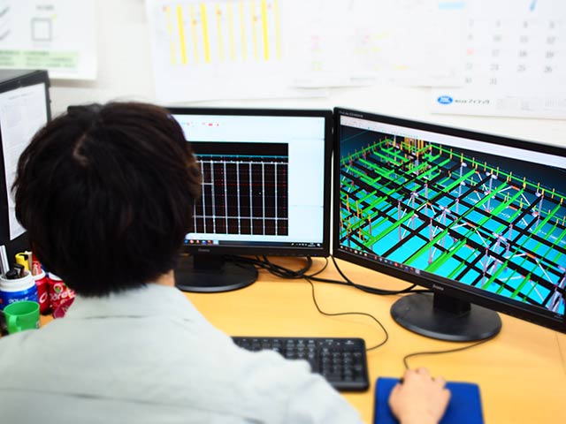 この技術の結晶を、壊されていく自然に負けない鉄骨造、特に当社が得意としているH形鋼柱の建物を作り上げ、私の三つの経営理念のもと